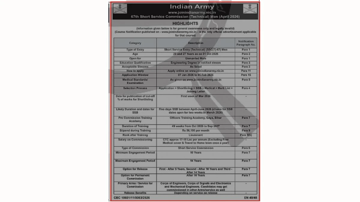 This recruitment is a prestigious opportunity for young engineers to serve the nation as commissioned officers in the Indian Army through the Short Service Commission (SSC).